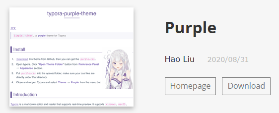 主题根据自己的喜好下载就好,以下以Purple主题为例:【Purple】https://theme.typoraio.cn/theme/Purple/